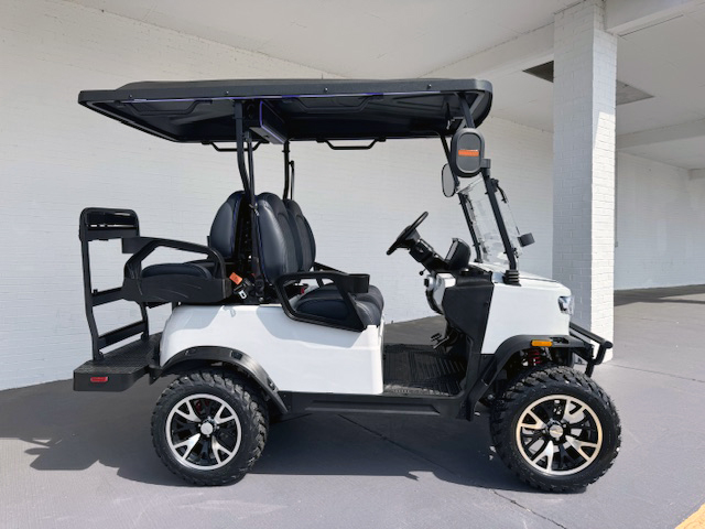 Turbo features a space-efficient 2+2 seating layout with two forward-facing and two rear-facing seats—ideal for tight spaces without sacrificing capacity. Its lifted chassis provides extra ground clearance for improved comfort and terrain flexibility. With the option of all-terrain or street tires, Turbo adapts easily to resorts, gated communities, and light-duty transport routes.