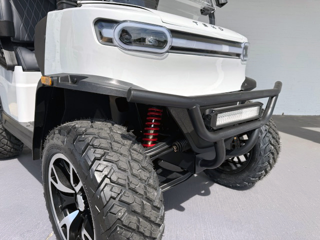 Turbo’s elevated chassis and heavy-duty suspension offer enhanced clearance for rougher paths and uneven terrain. A reinforced front bumper and off-road tire package give the vehicle a bold, durable stance. LED headlights and a wide light bar ensure maximum visibility, making this compact model a strong performer for both residential and mixed-use applications.